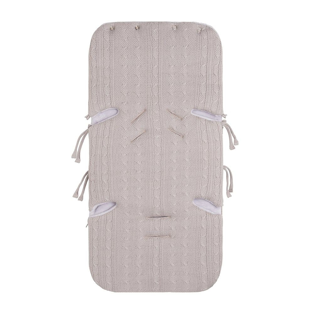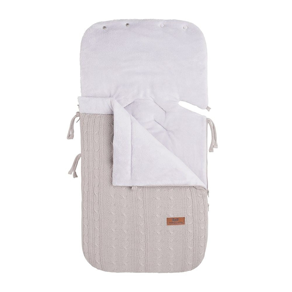 Baby's Only Med Baby Only footmuff autostol 0+ Cable i farven loam vil dit barn føle sig godt tilpas i autostolen. Kabelmønsteret i strikningen giver din autostol et klassisk, moderne look. Når det er koldere, kan du forvandle toppen til en slags hue, der giver ekstra varme og beskyttelse. Indersiden og ryggen har et blødt for. Det gør, at dit barn kan ligge dejligt varmt i autostolen. Forsiden af denne strikkede kørepose er helt aftagelig. Fodposen er velegnet til gruppe 0-autostole, til børn på 0-13 kg eller op til en alder på +/- 12 måneder. Velegnet til både 5-punktssele og 3-punktssele