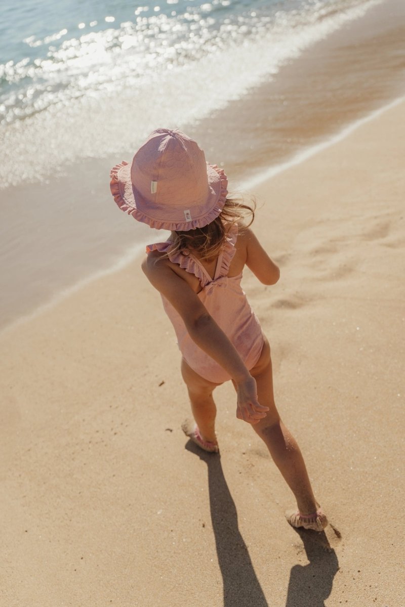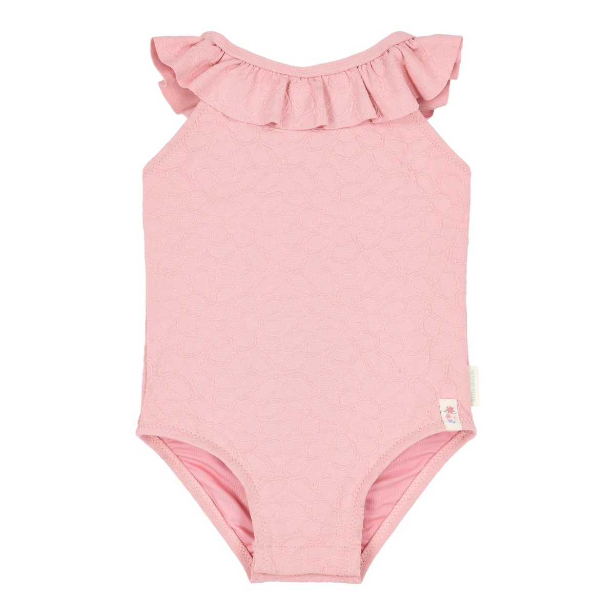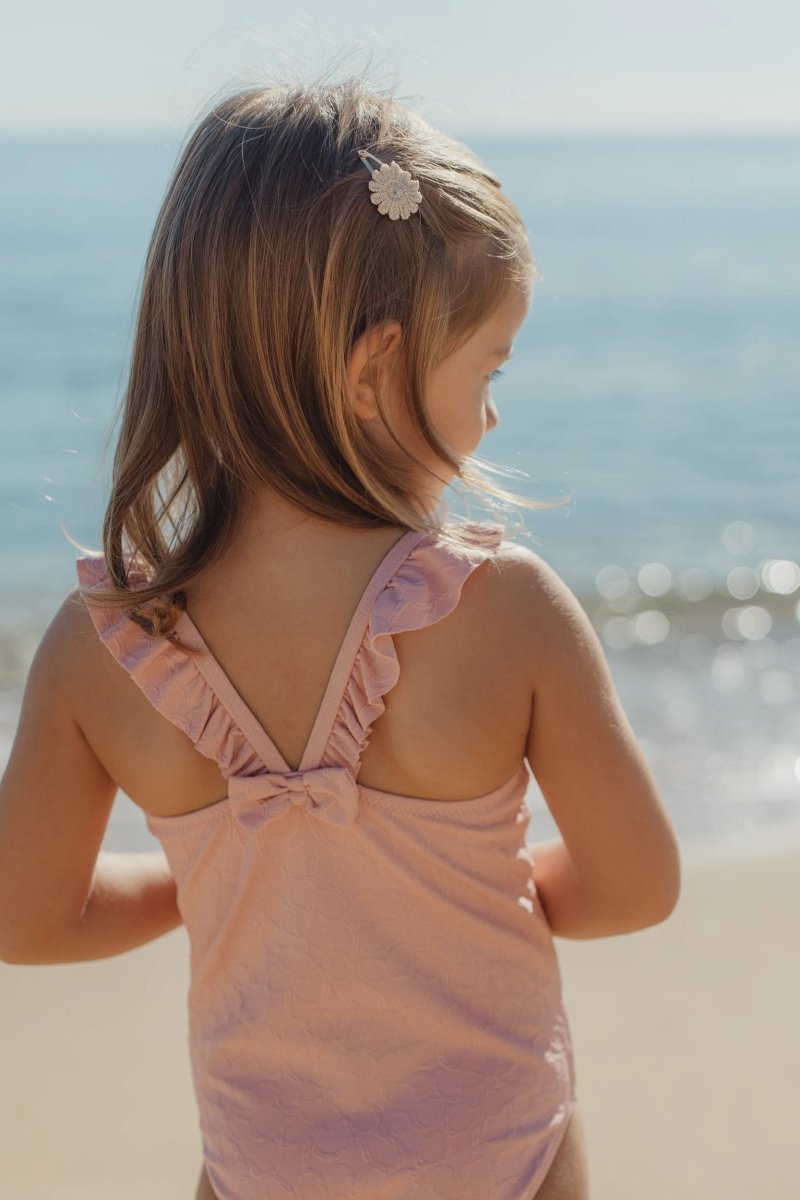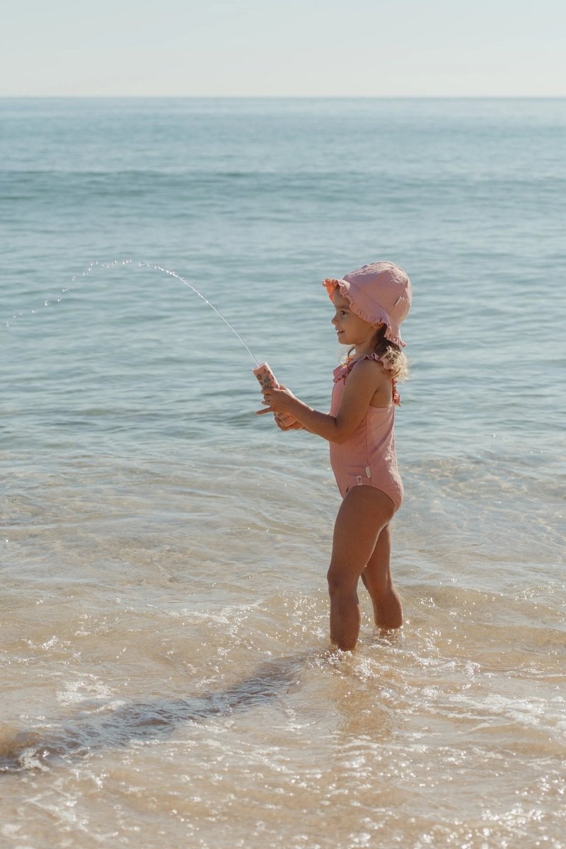 Lad din lille stråle på solrige dage med Dreamy Pink Rose -badedragten. Det diskrete 3D-blomsterstof giver badedragten et raffineret og sprudlende look, der er perfekt til stranddage, sjov i svømmehallen eller leg i haven.