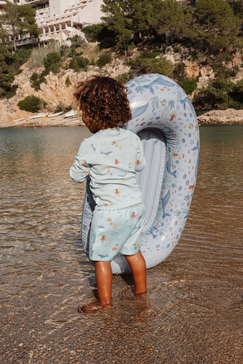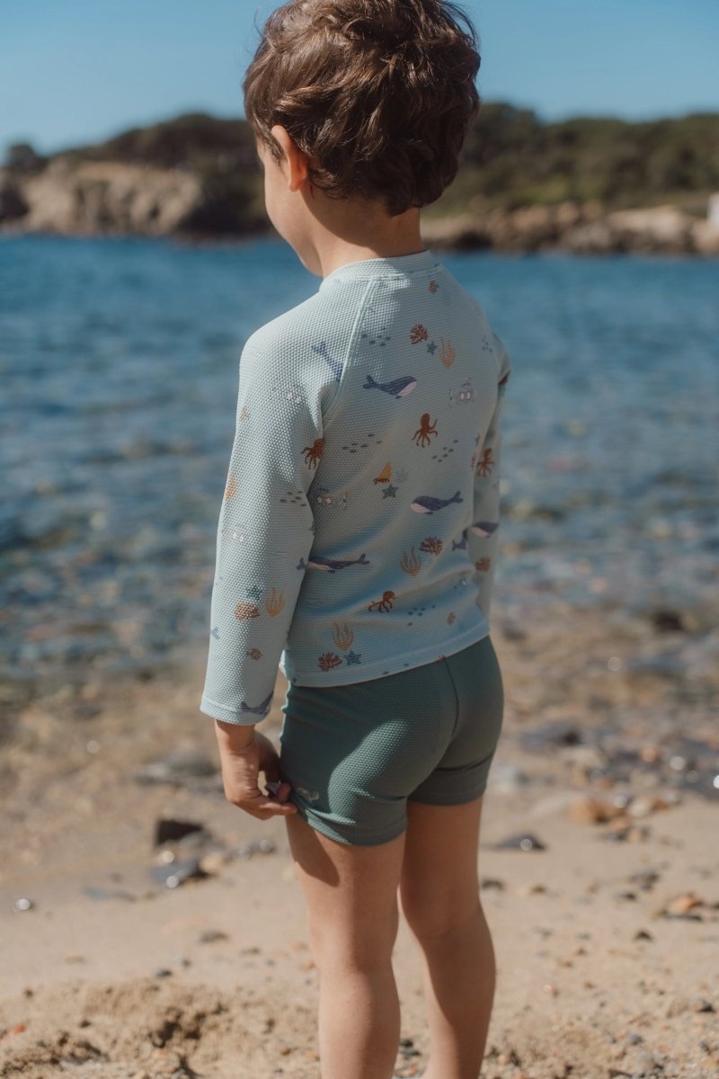 Denne grønne langærmede badetrøje fra Ocean Friends-kollektionen er perfekt til små vandglade børn, der elsker at lege i solen. Det muntre undervandsmønster giver et legesygt look, mens stoffet hjælper med at beskytte mod solen under sommerens eventyr. Husk altid at smøre din lille med solcreme for at sikre optimal beskyttelse.