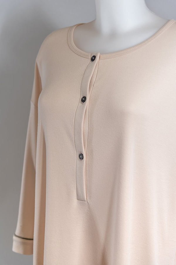 Bamboom En stilfuld og elegant ammebluse eller natskjorte lavet af 100 % økologisk bambus. Dejlig at have på under graviditet eller amning. Ammeskjorten har en fin V-hals, så det er nemt at amme is.Door Bambussens egenskaber gør, at ammeskjorten ikke kun føles vidunderligt blød, men også er åndbar, anti-allergisk, anti-bakteriel og termoregulerende. Varer fra Bamboom er ud over at være superbløde også åndbare, antibakterielle, antiallergiske, fugtabsorberende og temperaturregulerende. Bamboom s trendy produkter er fuldt ud tilpasset nutidens tempofyldte moderne verden. De tager sig af din baby på en naturlig måde, mens de stadig passer ind i vores moderne liv. BamboomProdukterne er yderst behagelige og velegnede til småbørns følsomme hud takket være det bambusmateriale, de er fremstillet af. De irriterer ikke huden og er velegnede til intensiv brug. Bambus' egenskaber: -Absorberer 4 gange mere fugt end bomuld -Temperaturregulerende -Atmende -Antiallergisk (husstøv klæber ikke til bambusfibre) -Blødt som kashmir -Miljøvenligt