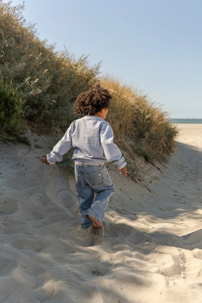 En bluse til at bevæge sig i, udforske og stråle i. Denne langærmede bluse i Denim Blue Stripe er fremstillet i en behagelig crinkle-kvalitet med et strejf af stretch, så den bevæger sig smidigt med hver eneste bevægelse. Den smalle stribe giver blusen et friskt og tidløst look.