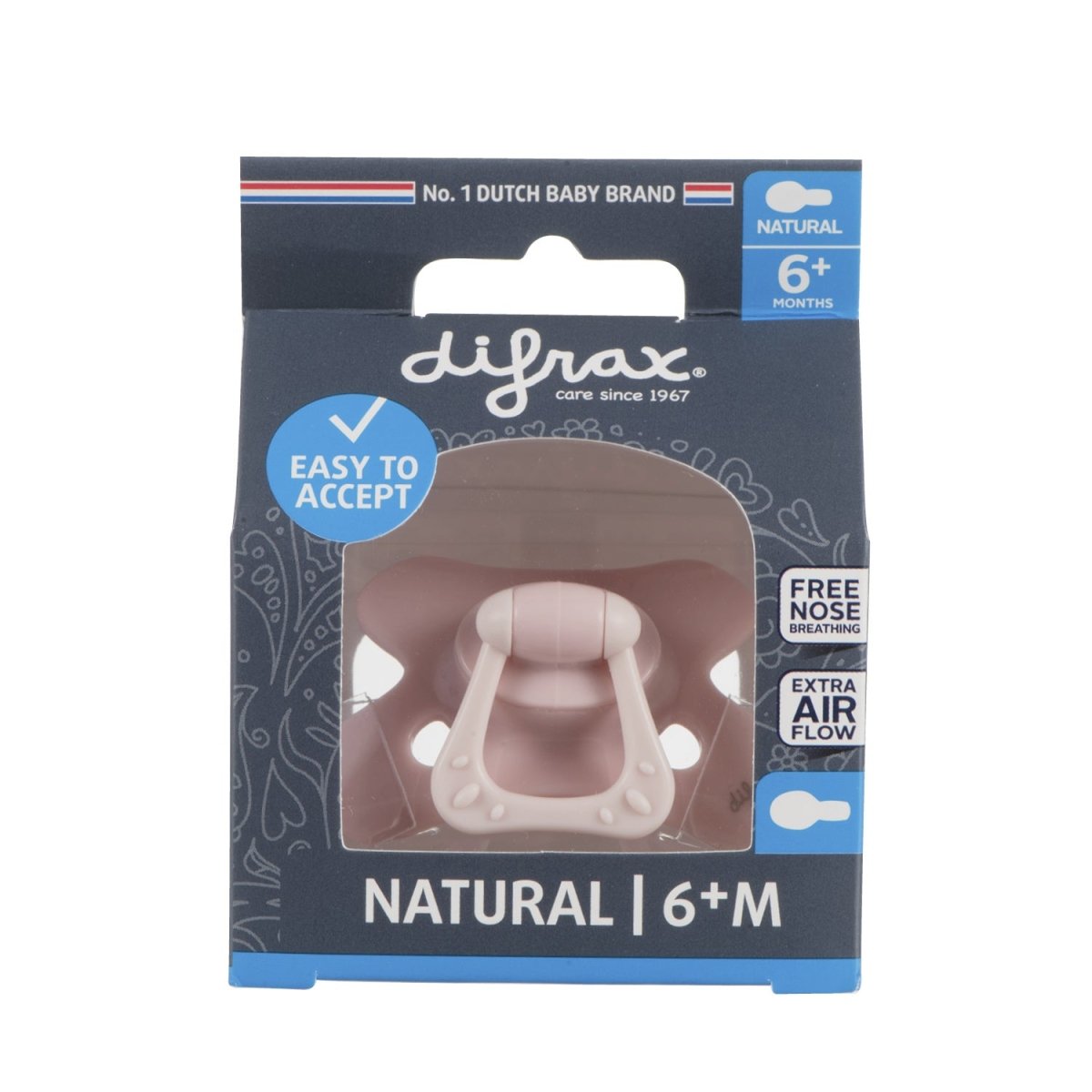 Difrax Denne unikke sut har et sommerfugleformet skjold, som gør, at sutten passer fint til dit barns ansigt. Udsparingen i næsen giver dit barn mulighed for at trække vejret frit gennem næsen. Hullerne giver ekstra luftgennemstrømning, hvilket forhindrer hudirritation. Dentalmodellen er udviklet i samarbejde med et medicinsk team, herunder børnetandlæger. Den flade del af sutten presser mod tungen, og den konvekse side hviler mod ganen. Det stimulerer udviklingen af kæbe- og tungemusklerne. Sutten eller tutten giver dit barn tryghed, hvile og afslapning. Difrax Sutter findes i mange trendy prints og forskellige størrelser. Råd: Udskift sutten hver sjette uge. Træk dagligt i sugedelen for at kontrollere, at den er ubeskadiget.