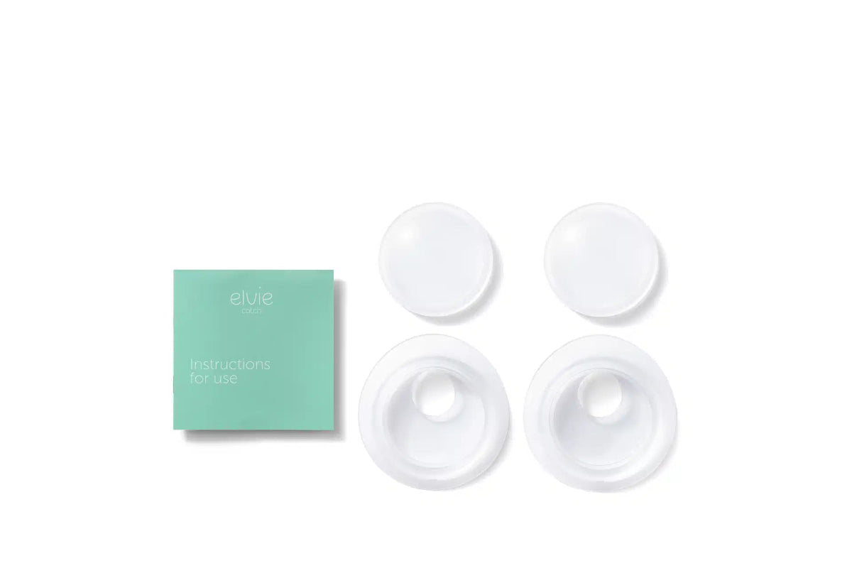 Produktbeskrivelse: Elvie Catch er et sæt med to brystskaller med beskyttelse for at forhindre mælkelækage. Selv hvis du lækker meget, fanger Elvie Catch hver eneste dråbe mælk diskret i din bh.