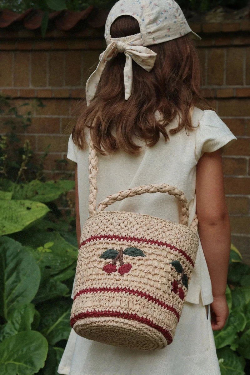 Straw Summer Bag – Konges Sløjd Cherry er en stilfuld og funktionel tilføjelse til sortimentet for unge familier, der elsker praktiske og moderigtige tilbehør.