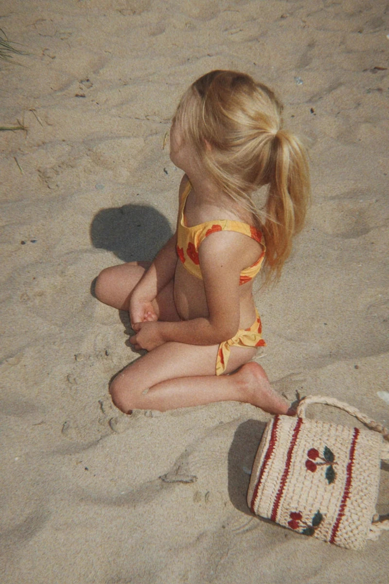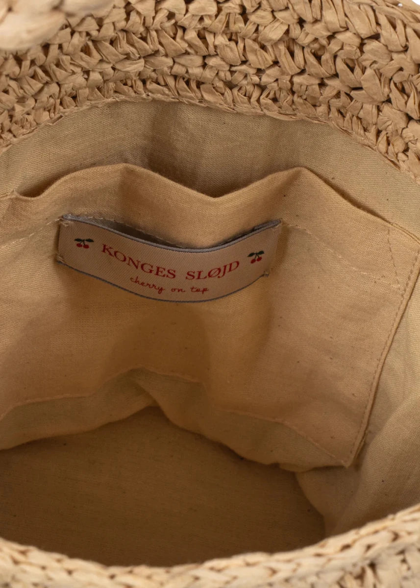 Et charmerende sommertilbehør: Straw Summer Bag fra Konges Sløjd er perfekt til små eventyrere, der gerne vil have deres ting med.