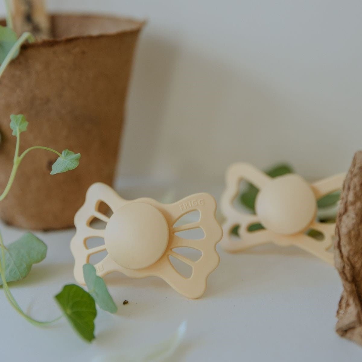 FRIGG Lucky er inspireret af firkløveren. Skjoldet har bølgede kanter, der er formet som bladene på firkløveren, og disse blade reflekteres også på skjoldet og fungerer som lufthuller. I midten finder du en rund midte, som understreger sutternes elegance. Firkløveren er et universelt anerkendt symbol på held og lykke. Den betragtes som en lykkeamulet på grund af sin sjældenhed. FRIGG Lucky er lavet for at give børn en beroligende komfort, der bringer lykke. Denne sut er den lykkeamulet, der vil gøre ethvert barns liv lysere. FRIGG Lucky er en symmetrisk sut med en let fladtrykt og dråbeformet sut. Den symmetriske sut passer altid godt i barnets mund, uanset om det vender op eller ned. Sutten er designet med en fladere hals for at reducere trykket på ganen og tandkødet og også risikoen for skæve tænder