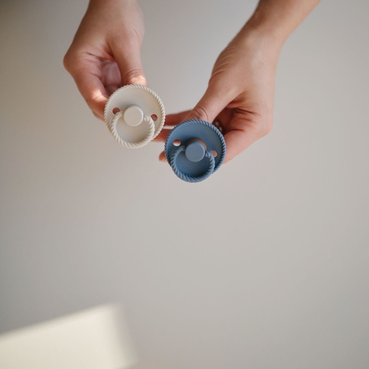 Størrelse 1: Sutten er 27 mm og anbefales til alderen 0-6 måneder. Størrelse 2: Sutten er 30 mm og passer til alderen 6-18 måneder. FRIGG Rope fås med en sut i fødevaregodkendt silikone og naturgummi.