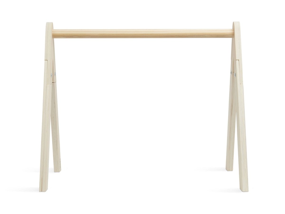 Fra ca. 10 uger stiger dit barns behov for at blive stimuleret, lege og se sig omkring. Det er her, en babygym giver den ekstra udfordring. Hæng legetøj efter eget valg op i babygymmet, og læg din baby under på et blødt underlag. Din baby vil synes, at legetøjets farver og bevægelser på babygymmet er fascinerende at se på. Den vil begejstret sparke med fødderne eller sige lyde, når det lykkes den at få fat i et stykke legetøj eller trykke på det for at få det til at bevæge sig endnu mere. Brugen af babygymmet stimulerer udviklingen af grov- og finmotorik. Det stimulerer sanserne. Desuden får din baby mere og mere kontrol over sine gribeteknikker og lærer, at legetøjet bevæger sig mere, når du trykker på det eller griber fat i det. Så en babygym er meget værdifuld. Babygym i træ Jollein leveres uden legetøj, det matchende legetøj fås separat. Kollektionen Jollein indeholder matchende legetøj til babygymnastik. Du kan nemt sætte babylegetøjet på og tage det af igen. Det giver dig mulighed for at variere legetøjet og gøre det interessant og udfordrende for din baby. Denne gymnastiksal er meget nem at samle. FarveBlankt træ. StørrelseHar en størrelse på 53x64x45 cm. Materiale100% krydsfiner. 100% sikkert træ. FCS-certificeret. RengøringRengøres med en fugtig klud. SikkerhedLad ikke dit barn være alene med babygymmet. Hold dig tæt på dit barn
