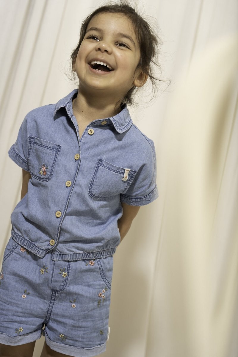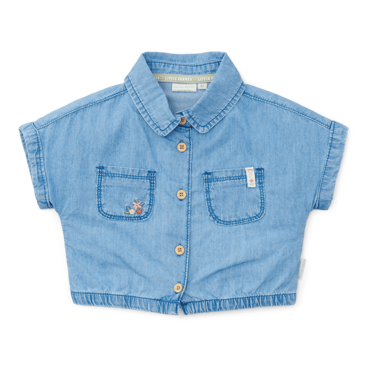 Denne bluse er lavet af dejlig blød og luftig bomuld og har søde, legende korte ærmer og en behagelig pasform. Der er en lomme på brystet med et muntert broderi. Der er en elastisk kant forneden, så blusen falder glat.
