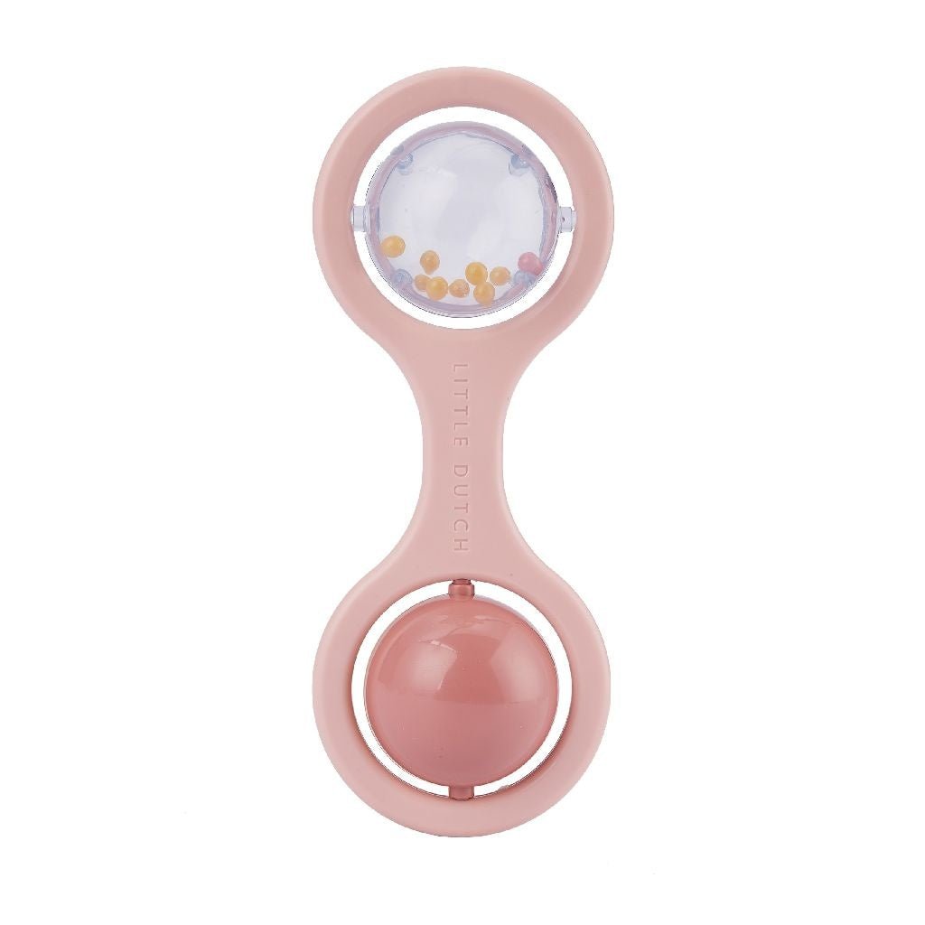 Denne lyserøde Little Dutch kuglerangle er et must-have! Ranglen er nem at gribe om og nem at rengøre. Dit barn kan ryste ranglen og høre de små kugler bevæge sig samt dreje den roterende kugle. Størrelse: 14,5 cm. Pakket på et bagkort. Velegnet til børn fra 0 måneder.
