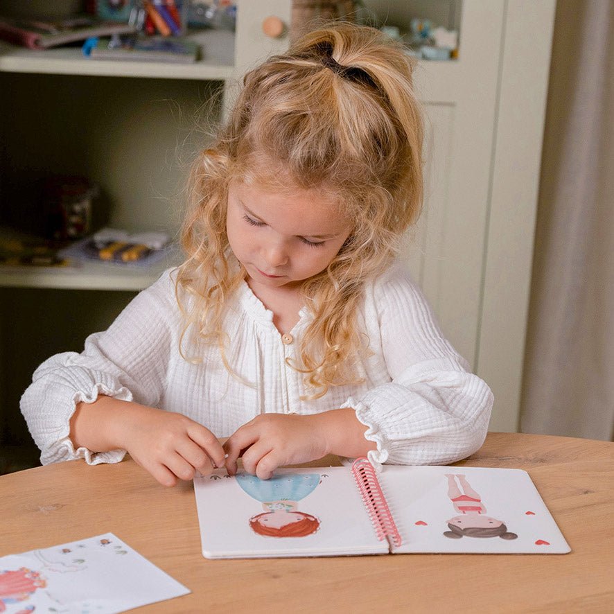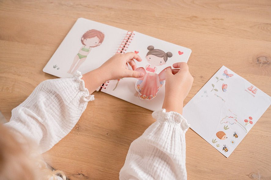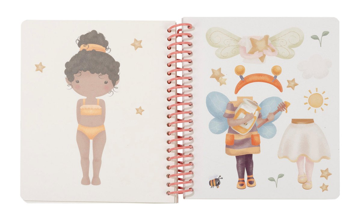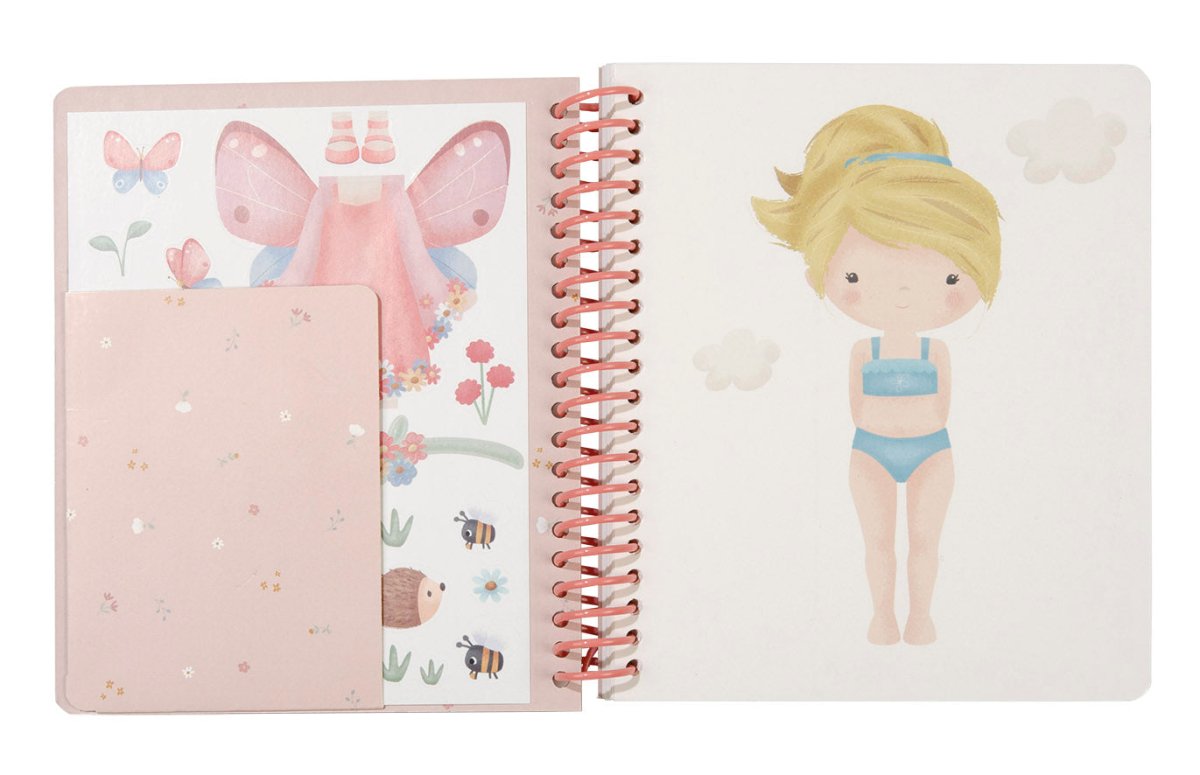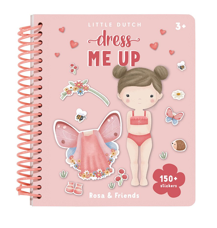 Hvad vil du tage på i dag? Denne Little Dutch Rosa & Friends udklædningsbog vil gøre dig til en rigtig fashiontylist. Bogen indeholder 24 sider med billeder af bl.a. Rosa, Evi og Julia samt 12 sider med klistermærker af det smukkeste tøj og tilbehør, som pigerne kan have på. Om du vælger en smuk lyserød prinsessekjole eller foretrækker at holde det enkelt: det er op til dig. Bogen er lavet af robust karton med genkendelige Little Dutch mønstre og farver og har et praktisk ringbind. Den ideelle aktivitet til hjemmet og på farten!