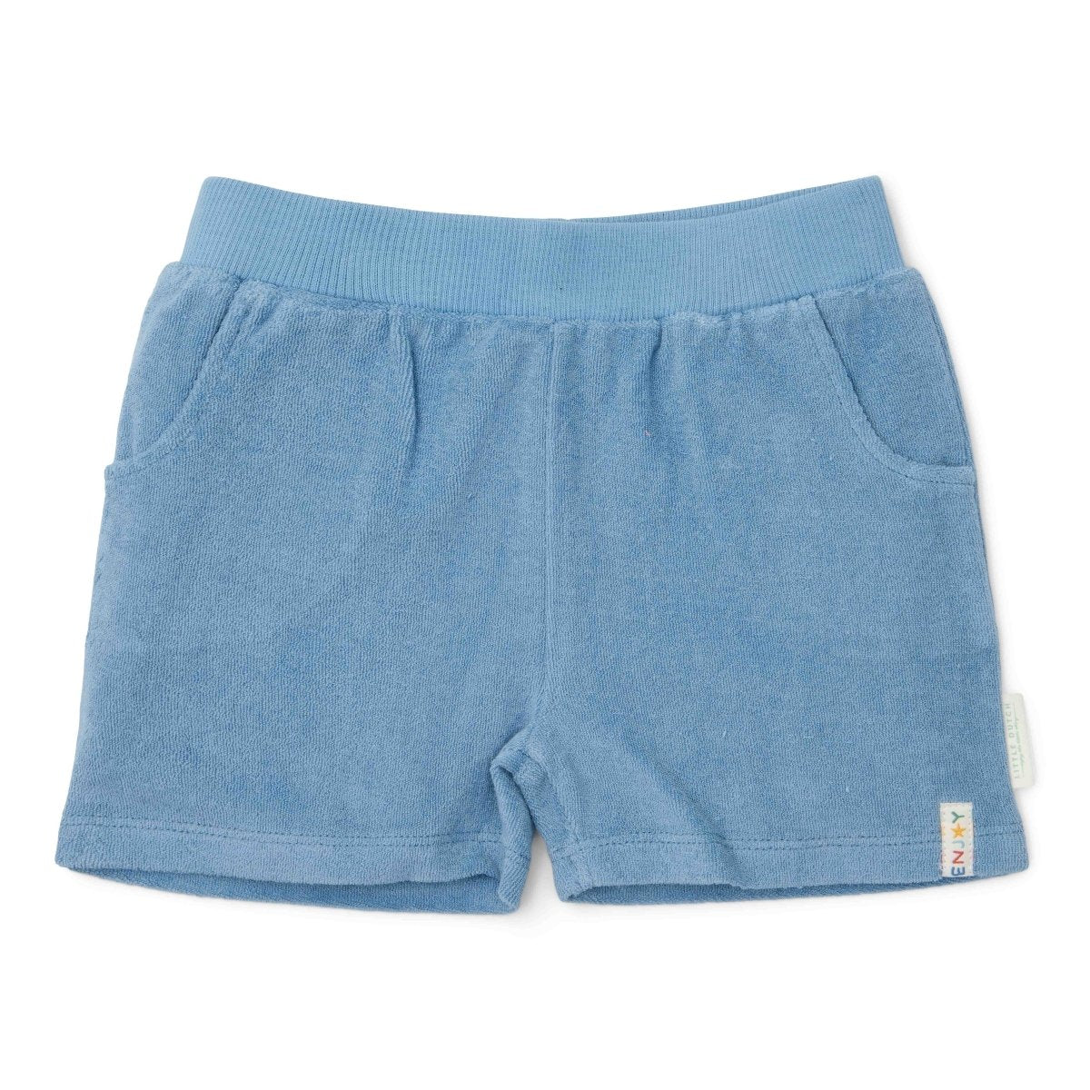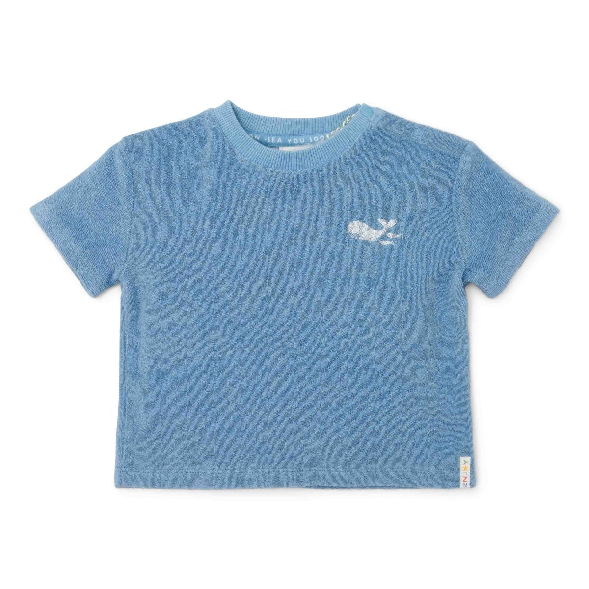 Nyd sommeren med vores sæt med T-shirt og shorts fra Ocean Sea Life-kollektionen i farven Ocean Blue. Sættet er lavet af 100 % økologisk bomuld i blød frotté og giver ultimativ komfort efter svømning eller på solrige dage. Bagsiden af T-shirten er dekoreret med et print af ikoniske havdyr, som giver et legende og eventyrligt look. Perfekt til en dag med sommereventyr.