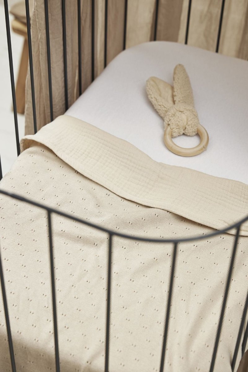 Lagnerne fås i forskellige farver. Ideelle, fordi de altid passer perfekt sammen med resten af Meyco Baby-kollektionen og matcher stilen på barnets værelse. Lagnerne fås i to størrelser: et vuggelagen på 75x100 cm til vuggen og barnevognen og et sengelagen på 100x150 cm. Du bruger lagnet under et tæppe.