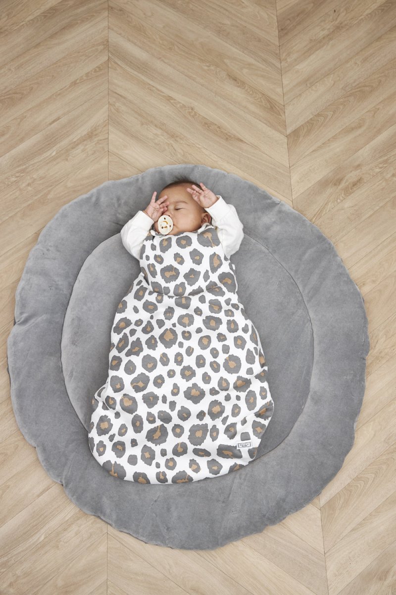 Produktinformation Roarrr! Et panterprint er altid en god idé og især printet på denne Meyco Babysovepose Round Panther. Soveposen består af 1 lag af 100 % blød bomuld, hvilket gør den perfekt til varmere sommerdage og -nætter. Bomulden ånder godt, har en god fugtregulering, holder den lille på den rette temperatur og sørger dermed for, at sommeren ikke bliver for varm. Den brede, runde bund sikrer, at den lille har tilstrækkelig bevægelsesfrihed. Den lange lynlås går helt ned til bunden, så du nemt kan skifte den lille.