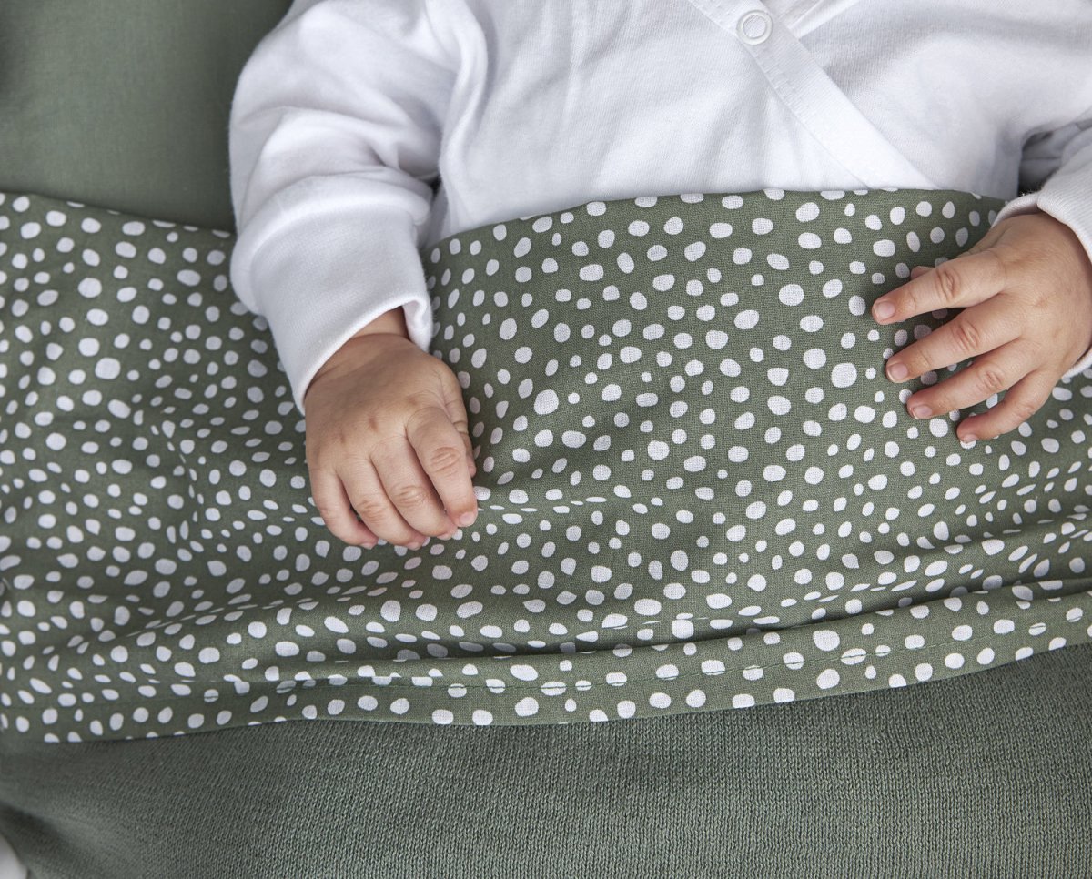 Lagnerne fås i to størrelser: et vuggelagen på 75x100 cm til vuggen og barnevognen og et sengelagen på 100x150 cm. Du bruger lagnet under et tæppe