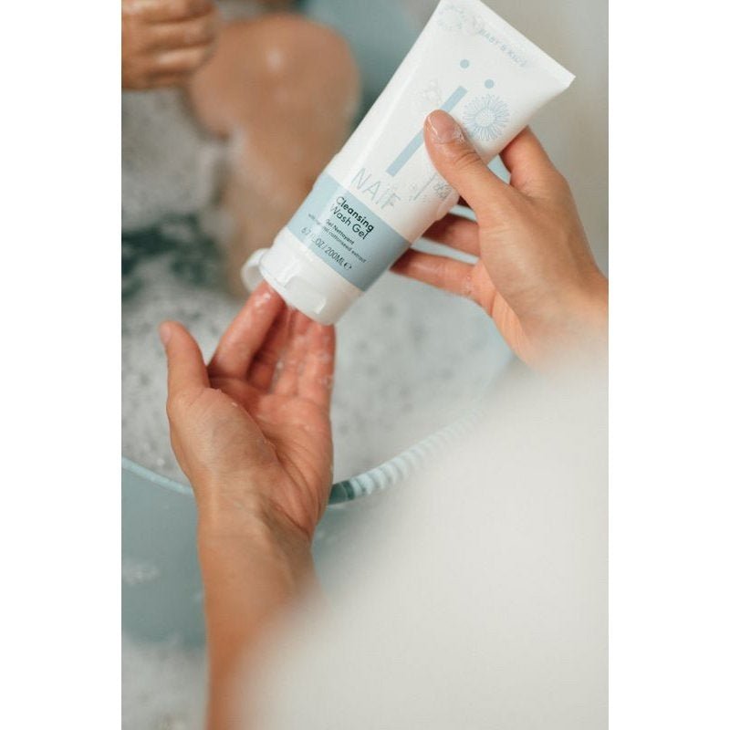 Naïf 's Nourishing Shampoo og Cleansing Wash Gel er den perfekte duo til badet eller brusebadet. Fra krøllet til spidst hår: Vores shampoo er der for alle små. Selv hvis din baby næsten ikke har noget hår endnu, for shampooen plejer også hovedbunden. Med sin milde formulering er Cleansing Wash Gel også velegnet til alle hudtyper. Takket være bomuldsfrøekstraktet renses hud og hår naturligt. Så ingen risiko for kløe eller hudirritation!