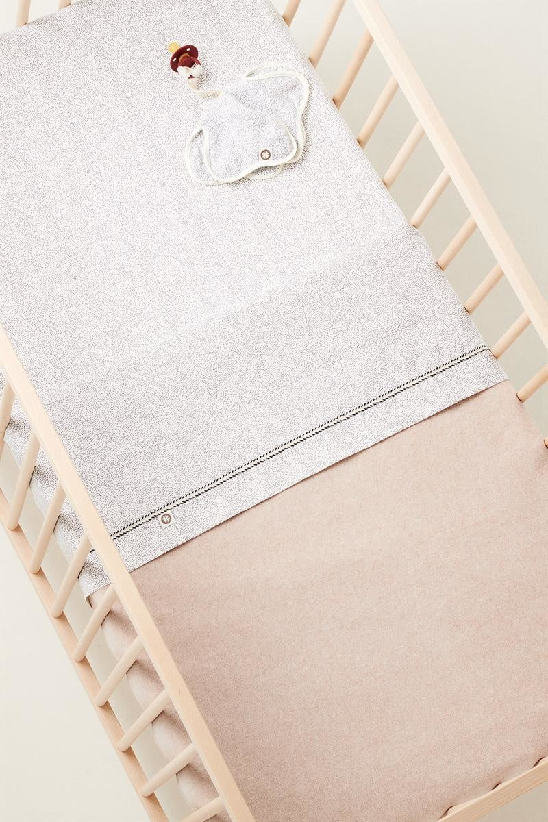 Din babys tremmeseng vil blive smukt dekoreret med dette Tiny Dot-lagen fra Baby Comfort-kollektionen. De søde små prikker er kombineret med et bånd