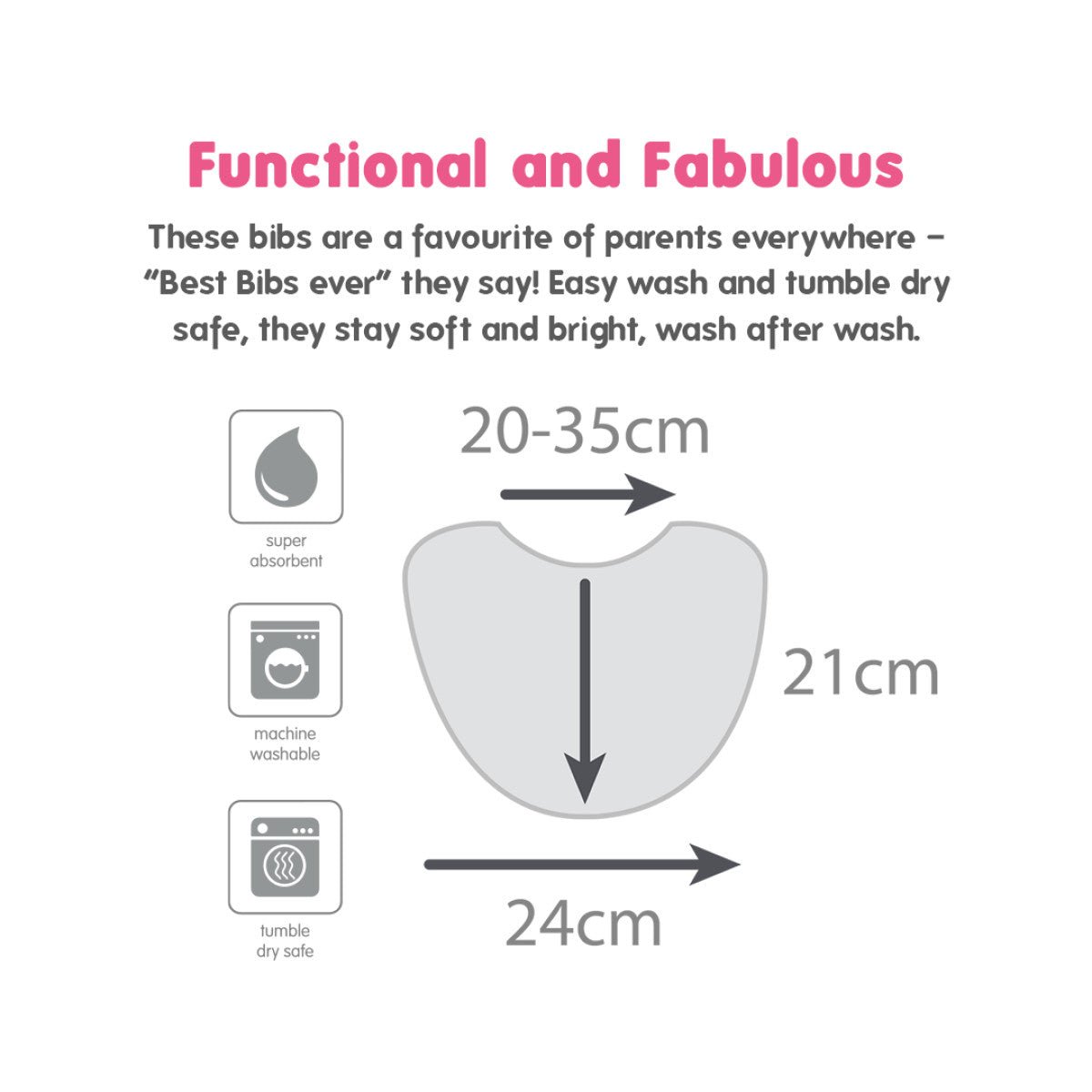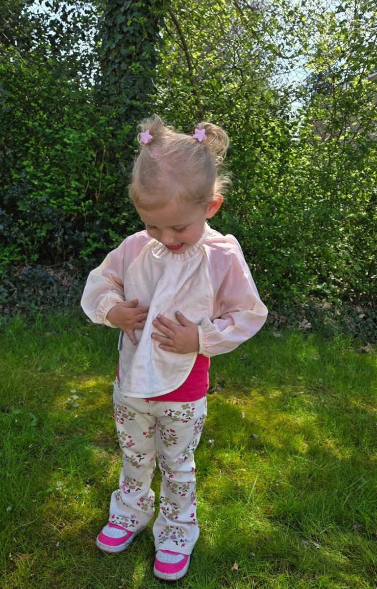 Hagesmækken er nem at skylle, hurtigtørrende og velegnet til vaskemaskine ved 40 grader og tørretumbler. Den bløde bomuld af høj kvalitet føles behagelig for barnet og kan også bruges til at tørre munden med. Takket være den justerbare trykknaplukning uden snore eller velcro er hagesmækken sikker og praktisk at bruge.