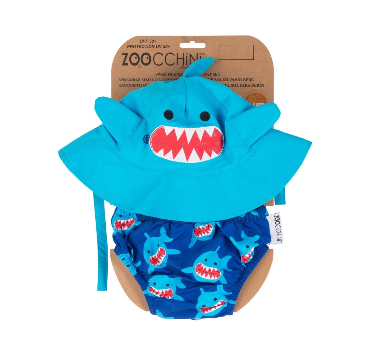 Zoocchini Din lille vil se så sød ud, når han eller hun tager en dukkert i havet eller poolen med denne badeble med matchende solhat. Det er garanteret sjovt at svømme med små børn! Men hvis dit barn ikke er pottetrænet endnu, er det rart at vide, at eventuelle uheld ikke sker, og at I kan lege i vandet uden bekymringer. En vaskbar badeble, som du kan vaske og genbruge, er derfor virkelig ideel. Perfekt til ferier, en dag på stranden eller ved poolen eller til baby- og småbørnssvømning. Vaskbare badebleer er nemme at have med i modsætning til en pakke engangs-badebleer, og de er også meget bedre for miljøet. Du kan nemt skylle dem med koldt vand efter svømning og lægge dem til tørre i solen. De velsiddende elastiske bånd ved benene og nettet på indersiden holder eventuelle uheld inde i bukserne. Shortsene kan justeres i taljen, så de passer til barnets krop. Solhatten beskytter mod skadelige solstråler og køler hovedet. Solhattene har en ekstra bred skygge og bliver siddende på plads takket være de to snore. Både badebleerne og solhattene har UV-faktor 50+ og er fremstillet af et luftigt, behageligt og hurtigtørrende materiale, som også er modstandsdygtigt over for klor og saltvand.